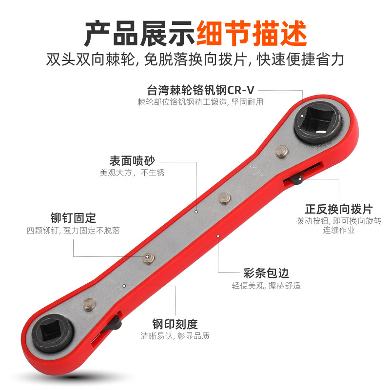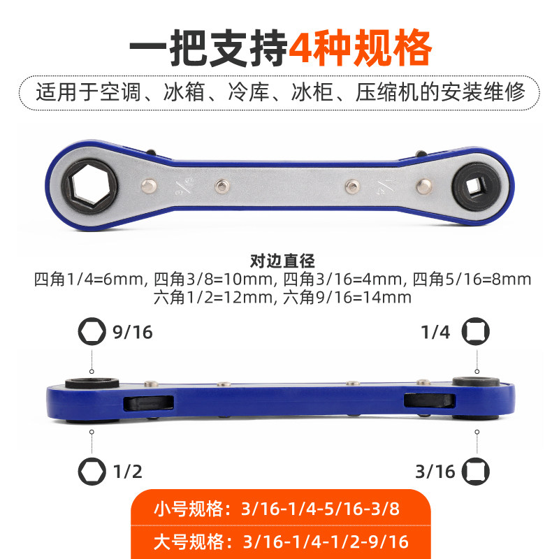 双向棘轮四用制冷阀门扳手 四方六角空调冷库截止阀 专用维修工具