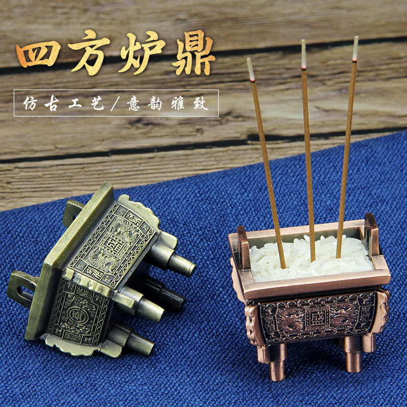 四方鼎圆形香炉仿古居室檀香盘香炉点香盘香托沉香香插香座线香炉