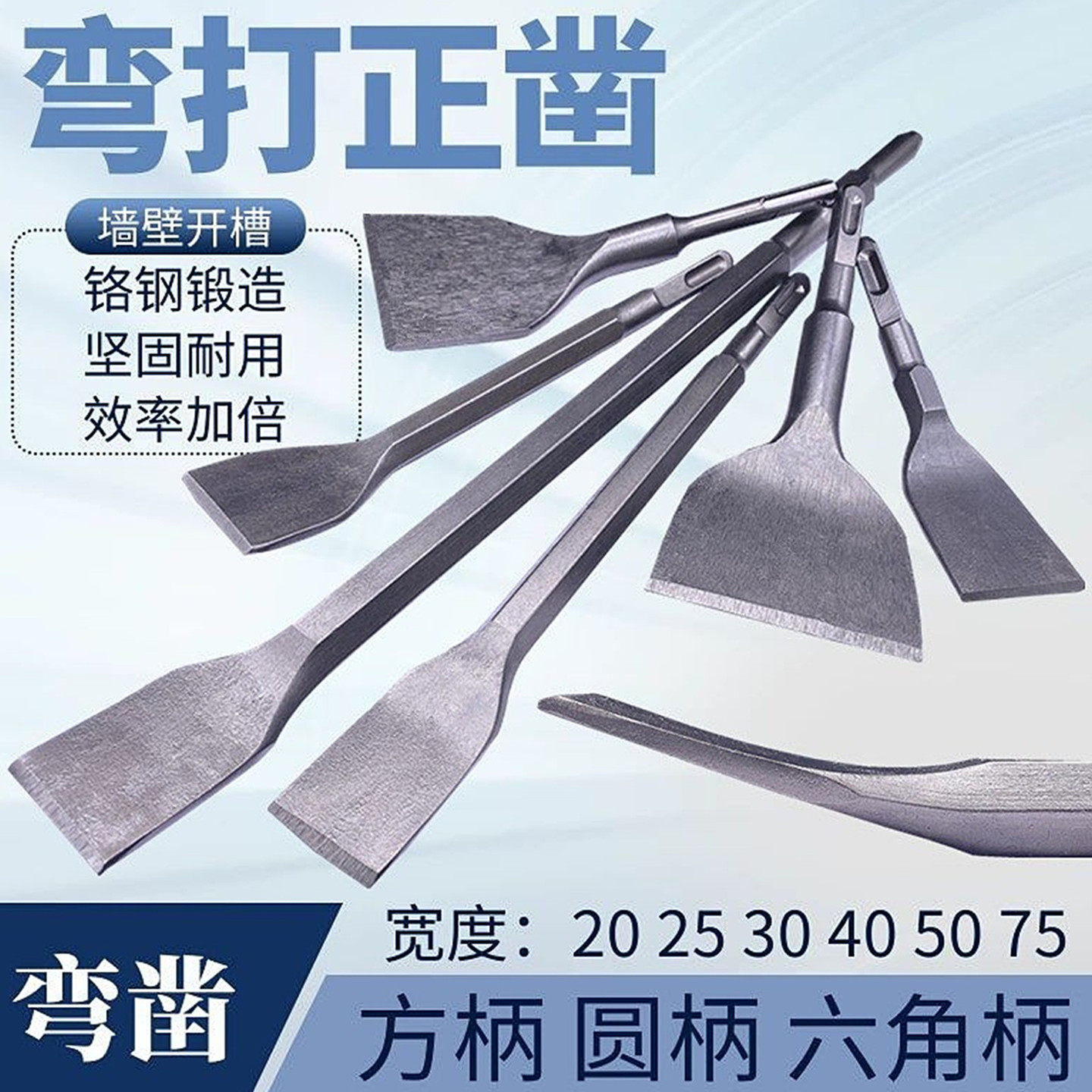 弯头电锤冲击方柄六角柄圆柄弯扁凿子镐钎电镐头铲子加宽弯凿墙壁