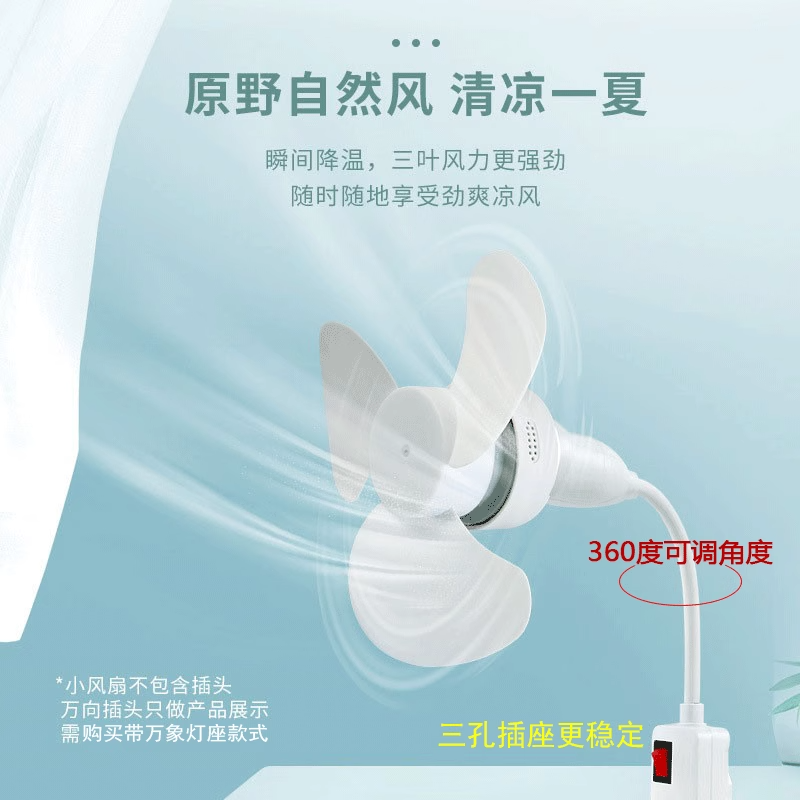 便捷迷你小风扇e27螺口创意厨房电风扇万向可调节卧室卫生间插座