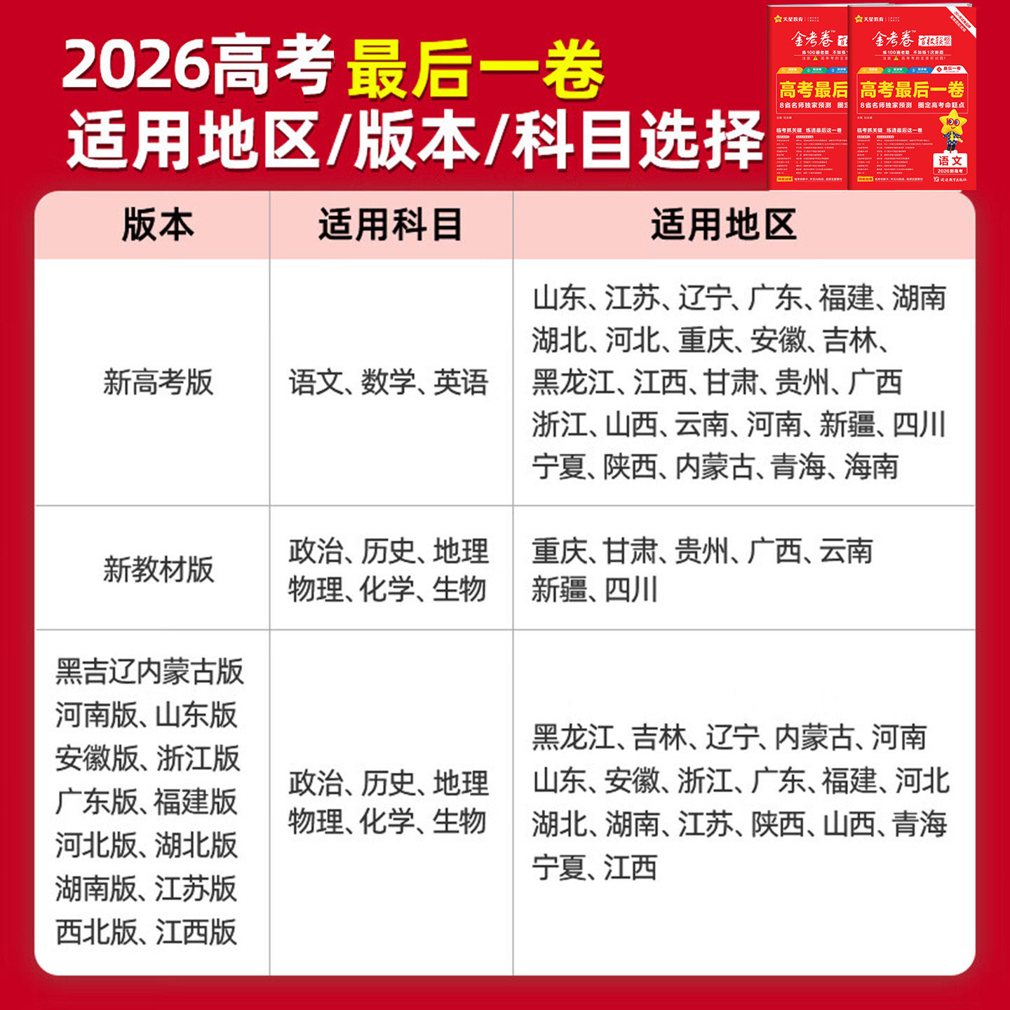 2026金考卷百校联盟高考最后一卷押题卷抢分卷测评卷预测猜题领航卷数学英语语文物理化学生物政治历史地理新高三模拟试卷天星教育