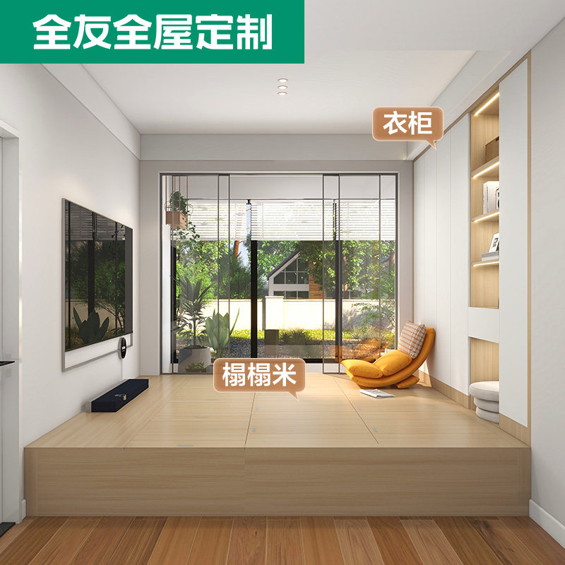 全友全屋定制榻榻米床衣柜一体整体收纳柜卧室空间儿童房现代简约