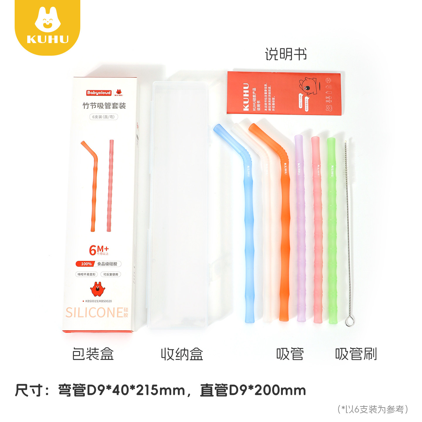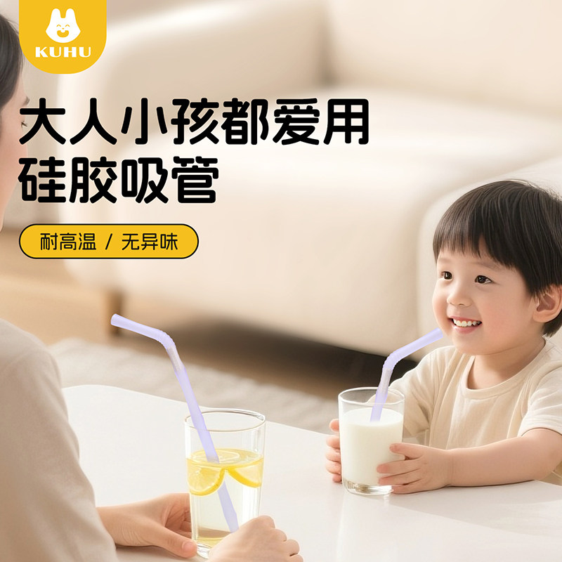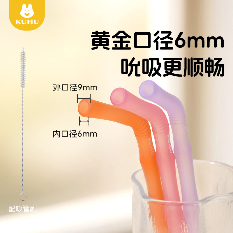 KUHU竹节硅胶吸管母婴食品用耐高温宝宝重复用水杯喝水无毒无异味