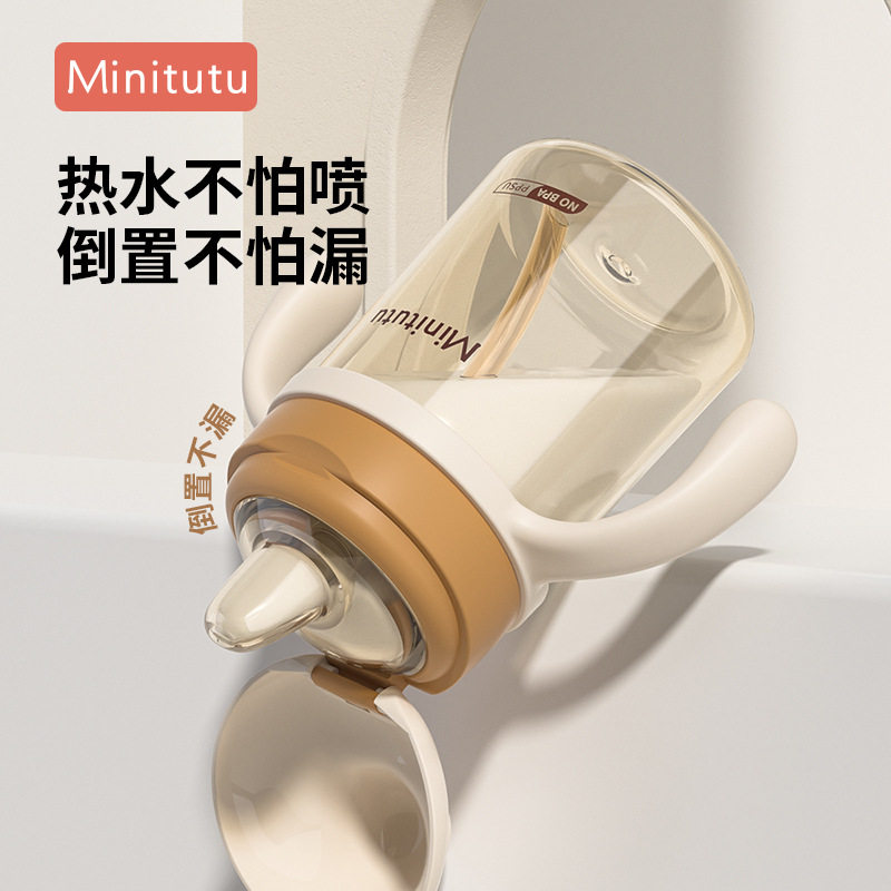 Minitutu学饮鸭嘴杯PPSU奶瓶水杯6月以上1岁宝宝宽口径儿童水杯