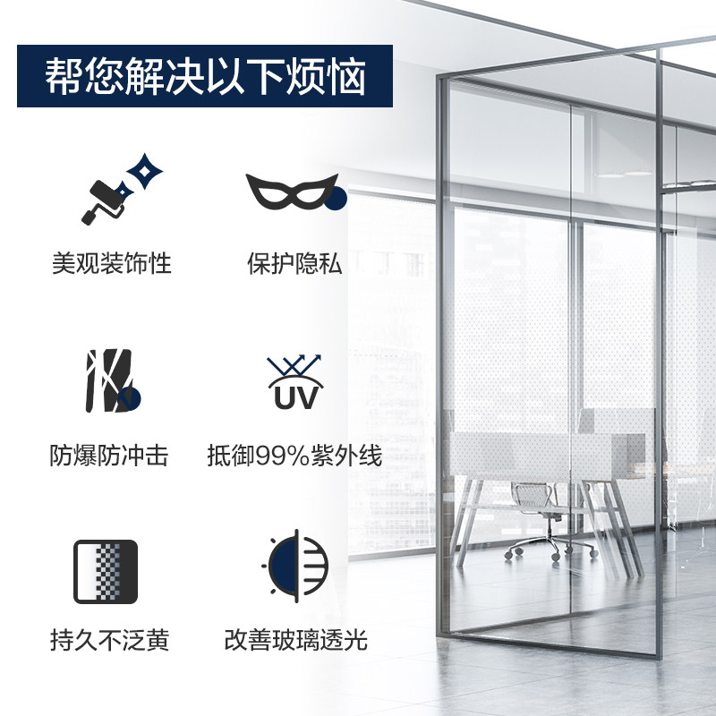 3M法纱玻璃贴膜单向圆点渐变膜办公室隔断磨砂防窥隐私防走光贴纸