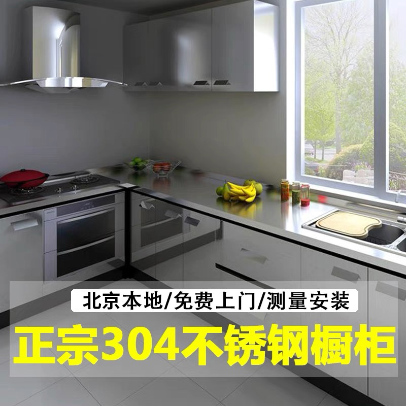 北京304全不锈钢整体橱柜台面全屋定制铝合金厨柜家用现代简约