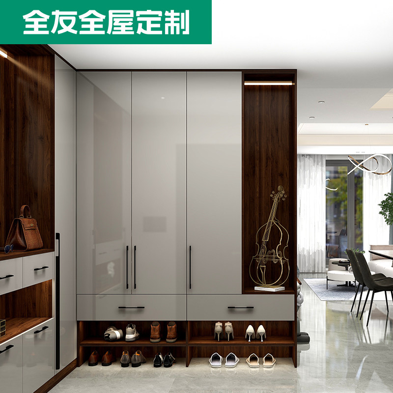 全友全屋定制现代轻奢玄关柜 入户柜一体到顶鞋柜定制 餐厅隔断柜