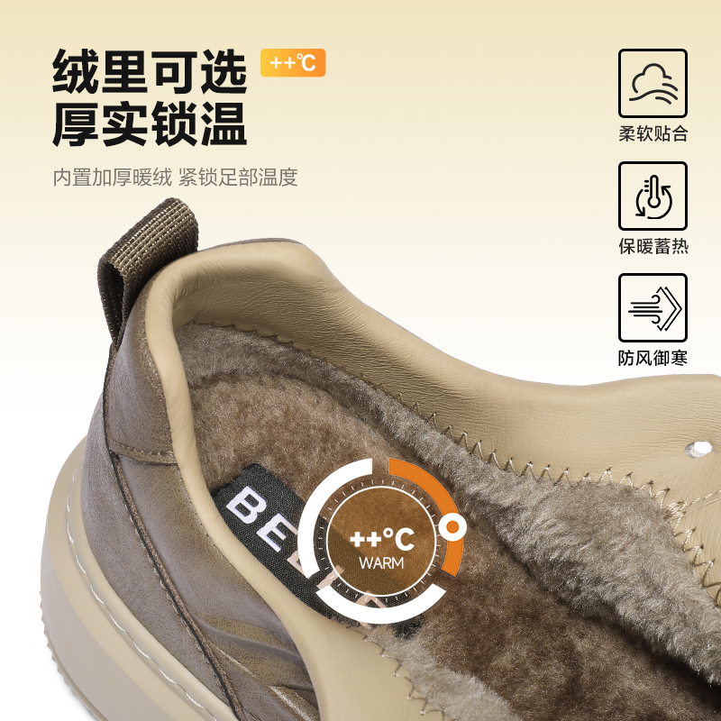 百丽男鞋加绒棉鞋工装鞋男士26春新商场款厚底休闲板鞋8YN01AM6