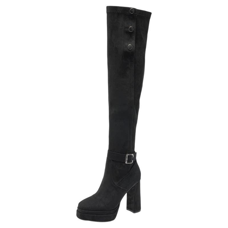 过膝长靴女2025新款秋冬加绒粗跟高跟长筒瘦瘦靴防水台显瘦时装靴