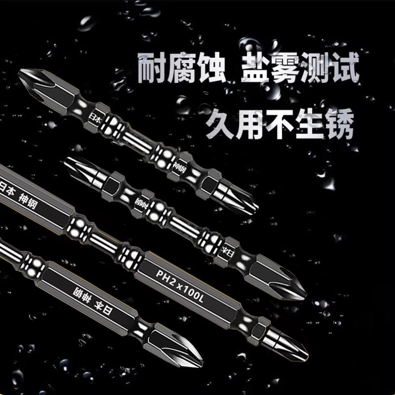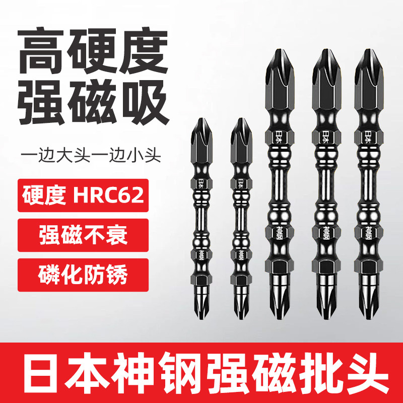 批头钨钢大小头强磁电动批头HRC62高硬度双头十字螺丝刀防锈套装