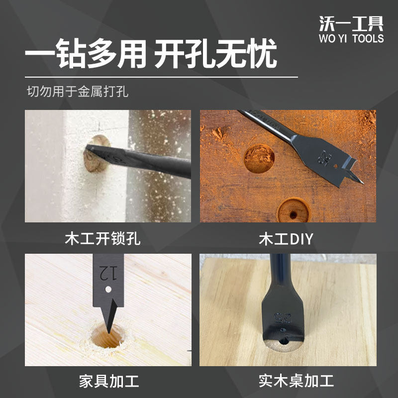 沃一三尖木工扁钻抽屉木锁开孔器扁钻套装木板扩孔器平钻组合钻头