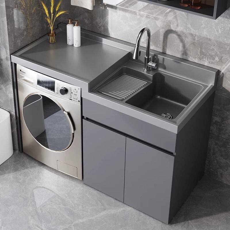 莫顿蜂窝铝洗衣机柜高低盆阳台柜石英石一体盆滚筒洗衣机伴侣定制