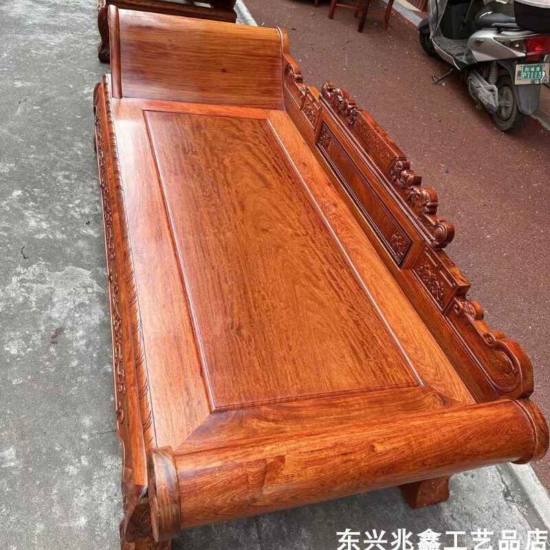 缅甸花梨木贵妃榻贵妃床红木住宅家具榫卯结客厅卧室雕花大果紫檀