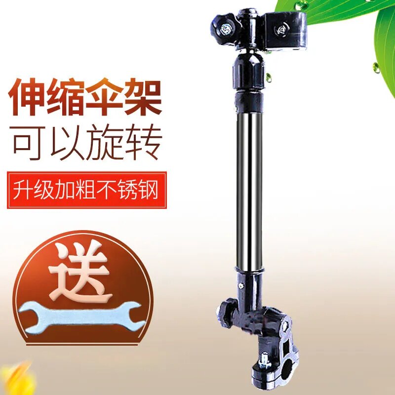 电动车撑伞架电瓶车遮阳伞不锈钢伸缩双夹架自行车家用雨伞固定架