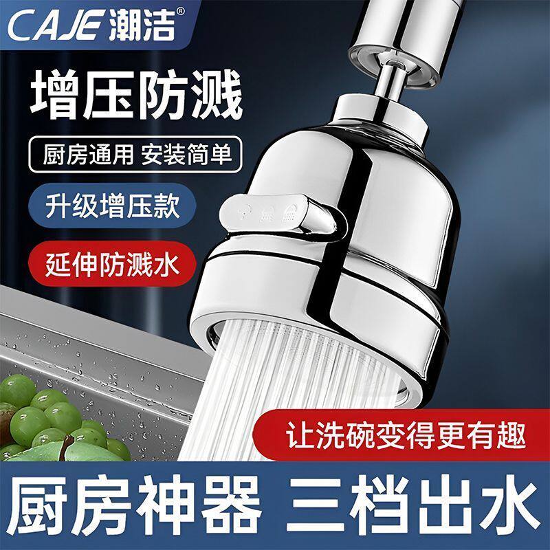 潮洁厨房洗菜盆延伸器水龙头防溅水神器通用接头万向旋转增压水嘴