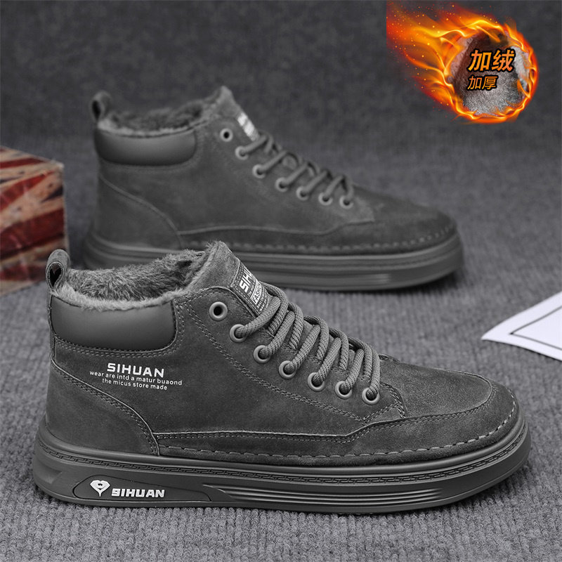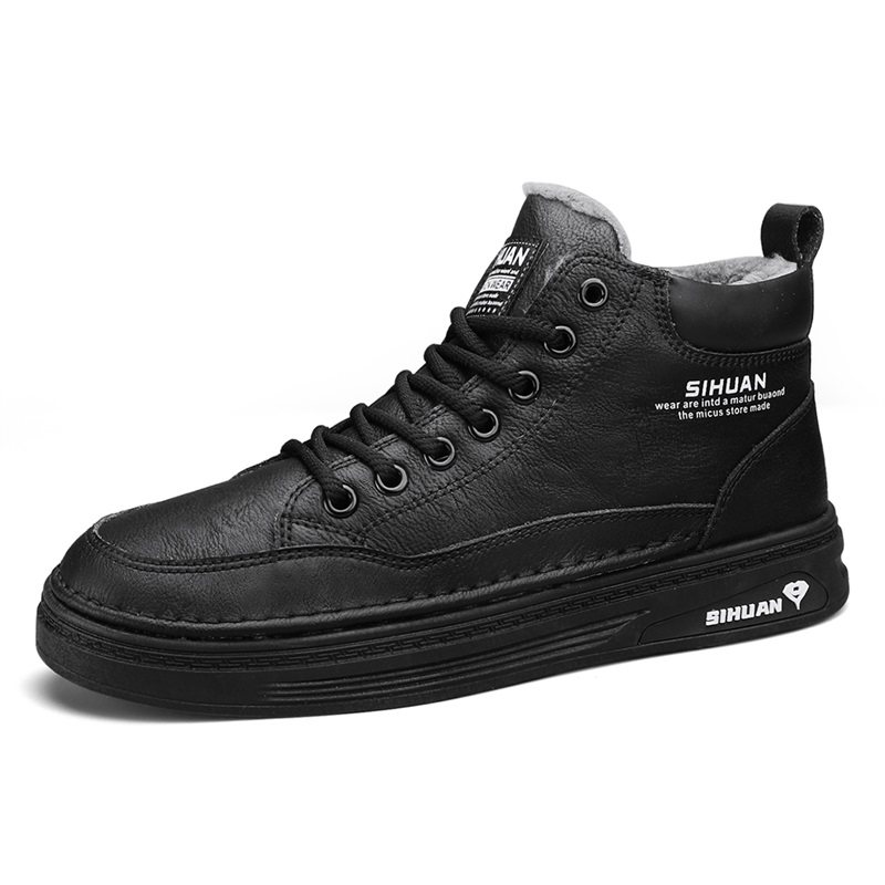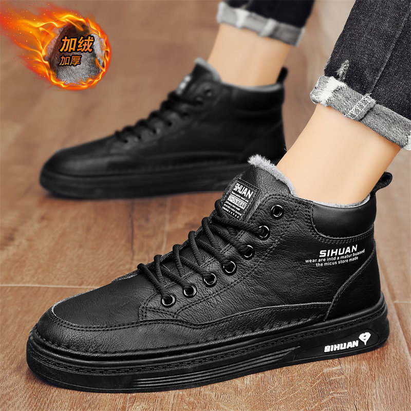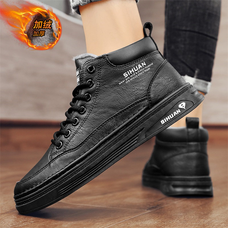棉鞋男款冬季加绒加厚保暖黑色高帮皮鞋上班工作防水防滑休闲板鞋