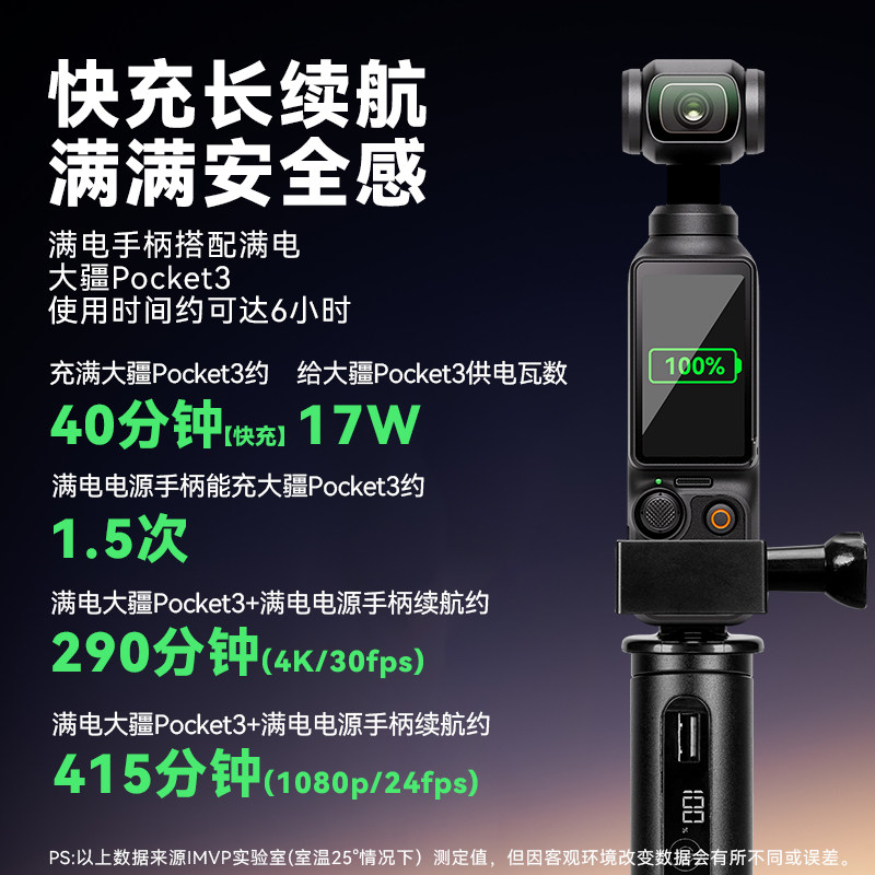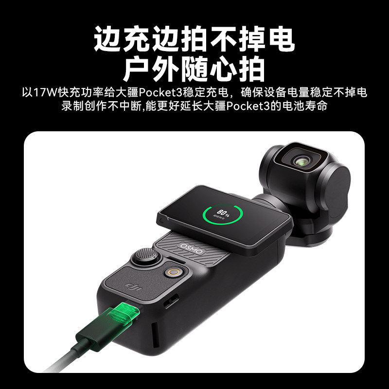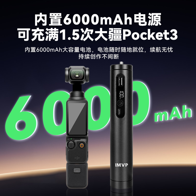 【3C国标】适用DJI大疆Pocket3续航手柄Osmo口袋云台相机外接充电宝6000毫安电池充电手柄配件延长户外电源杆