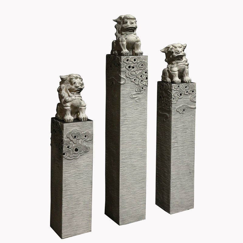 新中式户外别墅庭院仿石雕狮子拴马柱客厅玄关落地大型装饰品摆件
