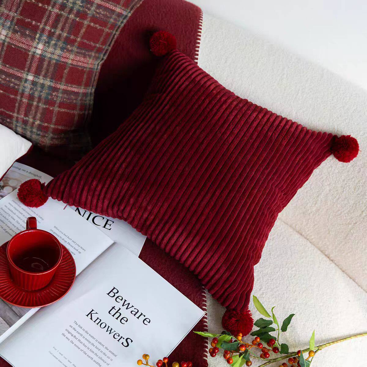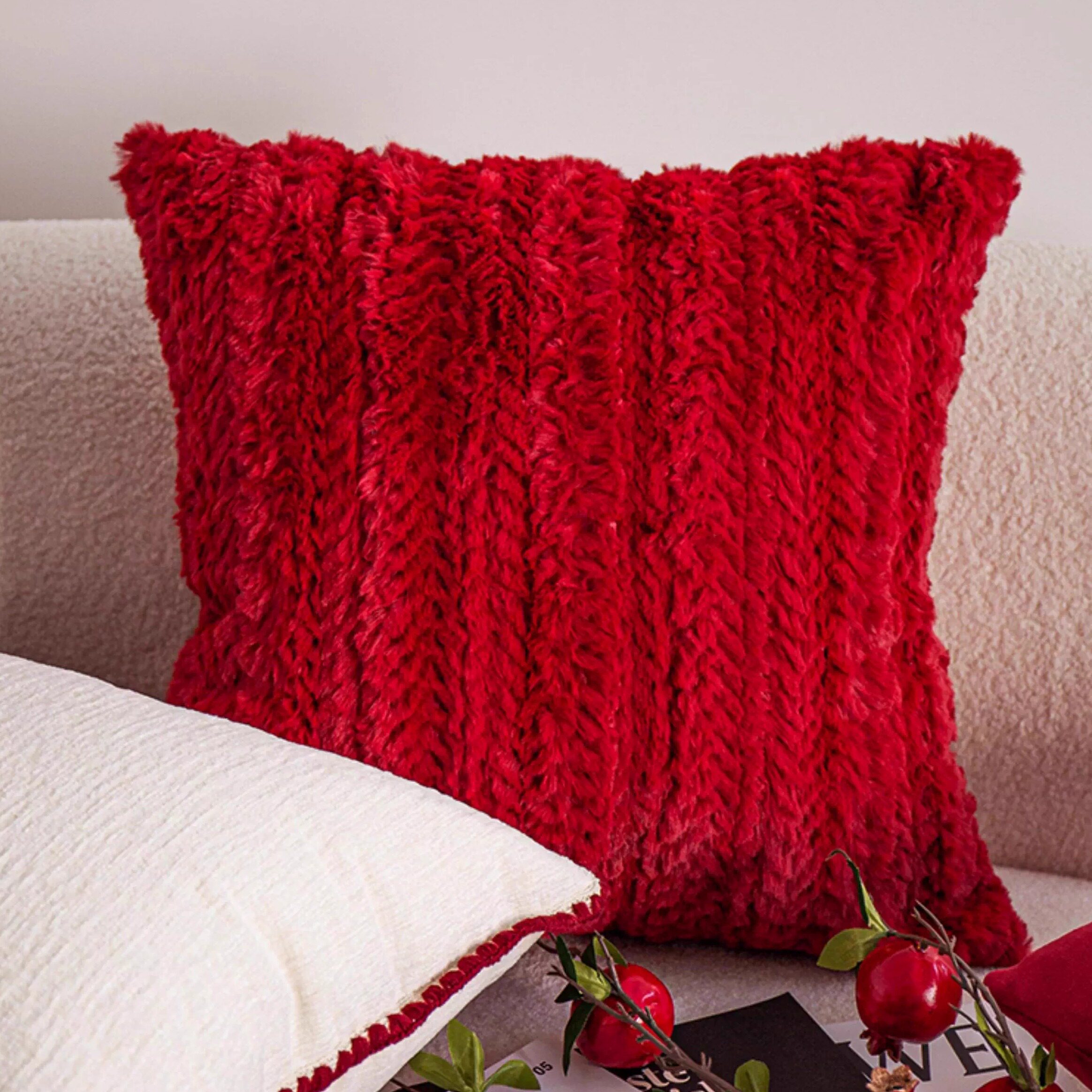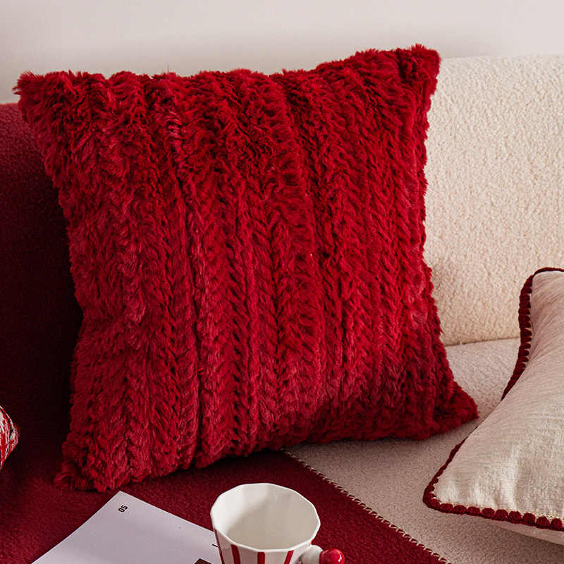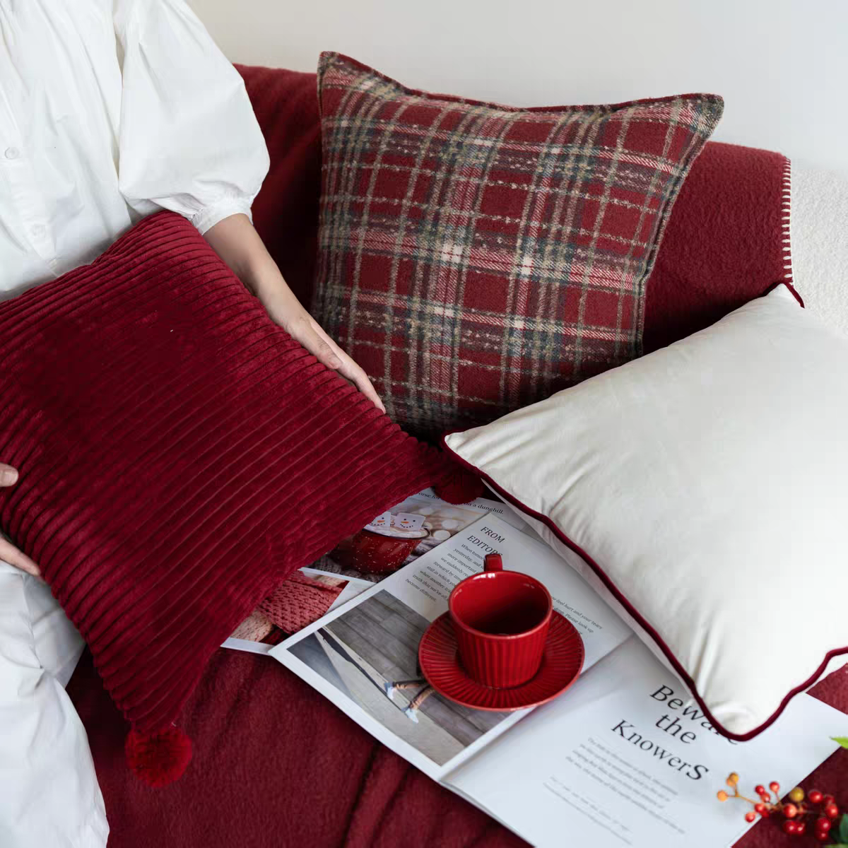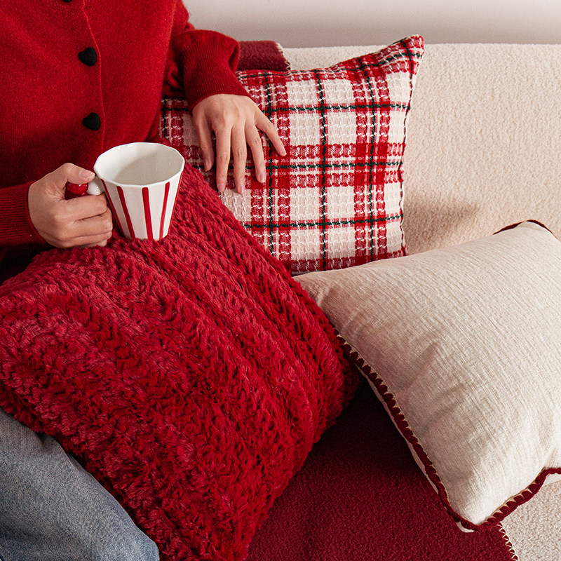 红色格纹喜庆抱枕套简约手工毛线编织家居沙发靠垫居家装饰软装