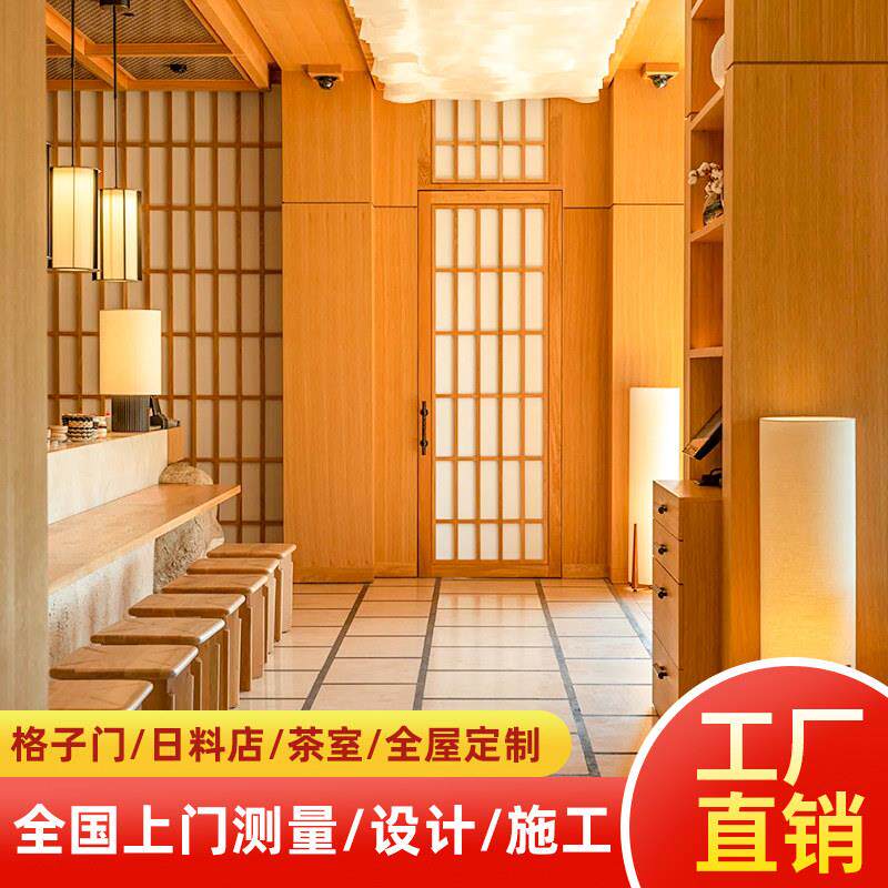 日式格子门拉门和室雪见窗原木隔断折叠全屋定制移门榻榻米格栅