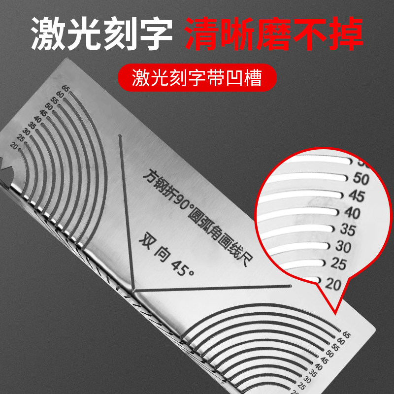 划线工具划规方管折圆尺方钢折90度圆弧角画线尺方管直角圆弧划线