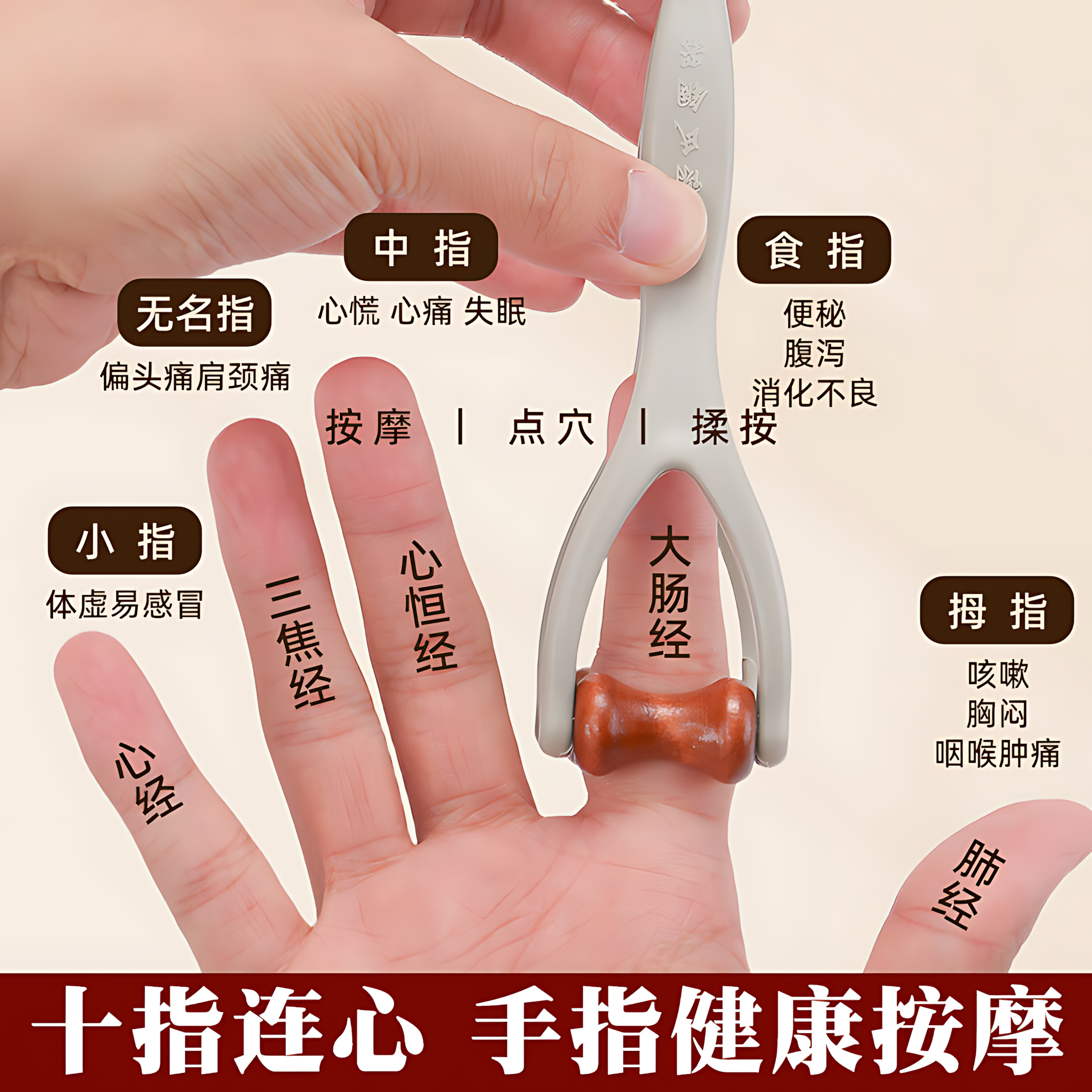 指甲按摩器手指滚轮按摩夹关节训练器变细变长矫正经络疏通棒按摩