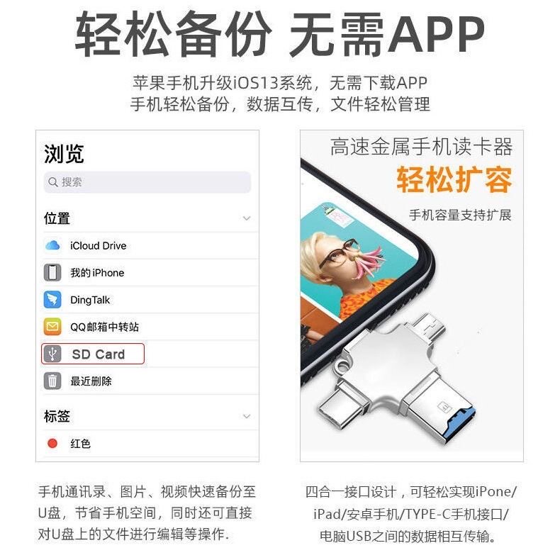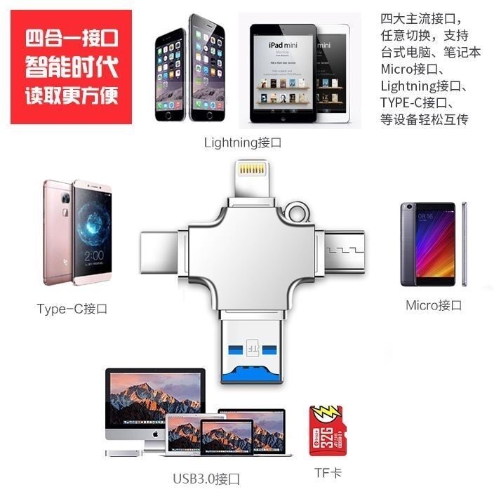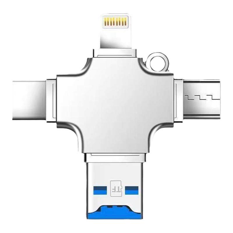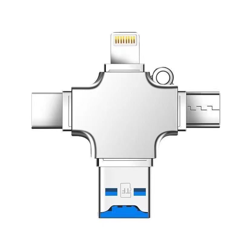 多功能四合一读卡器适用于USB苹果安卓手机typeC锌合金手机读卡器