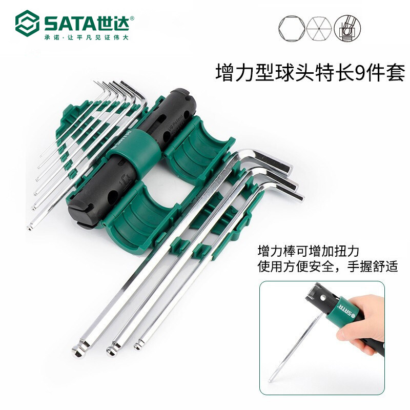世达工具内六角扳手套装9件增力型特长球头内六角组套内六方09124
