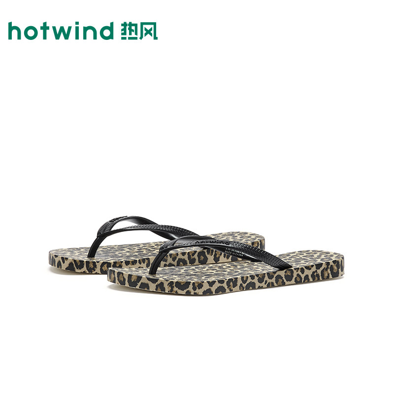 热风豹纹人字拖女鞋2026年春季新款居家室内洗澡夹脚拖H61W26202