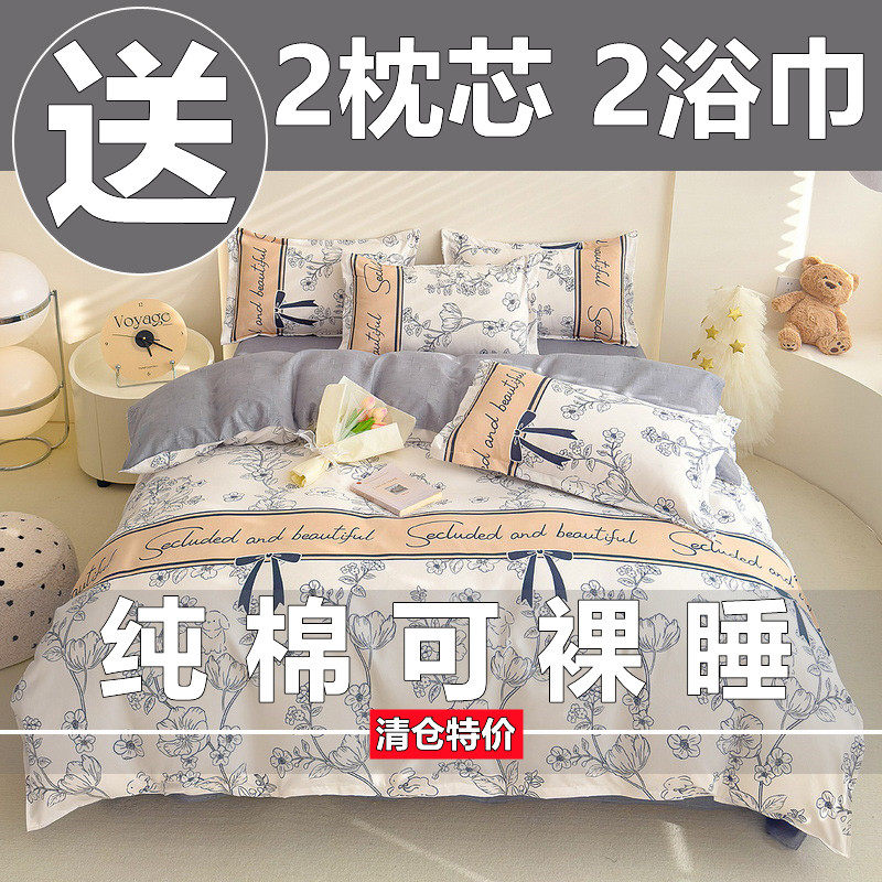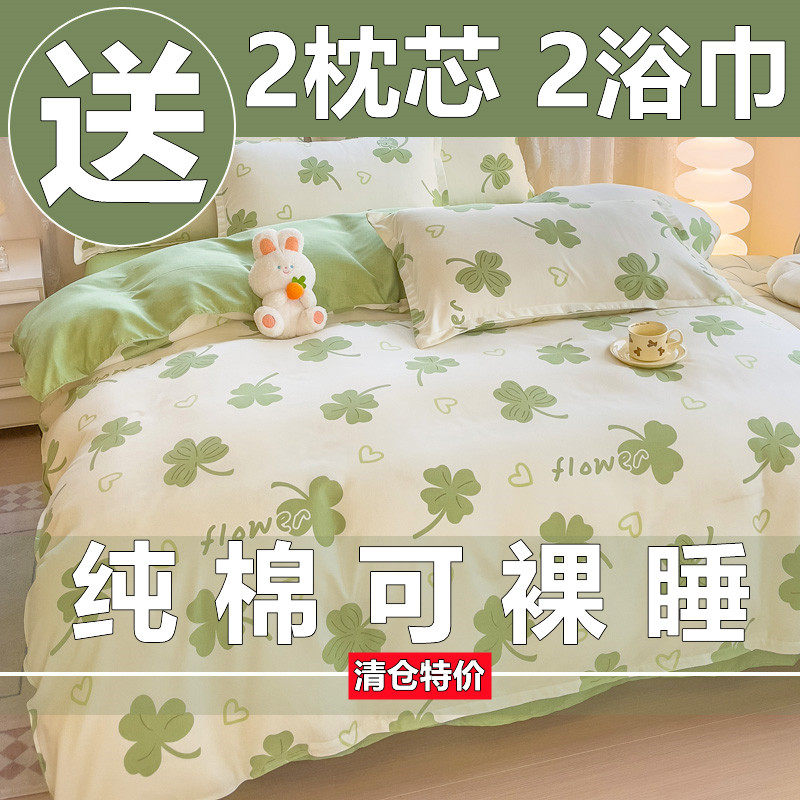 加厚床单四件套纯棉全棉2025新款被套被罩学生宿舍三件套床上用品