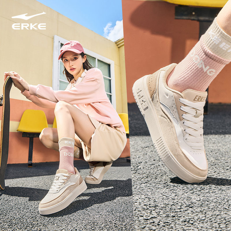 鸿星尔克女鞋板鞋厚底增高小白鞋冬季新款皮面休闲鞋百搭运动鞋子