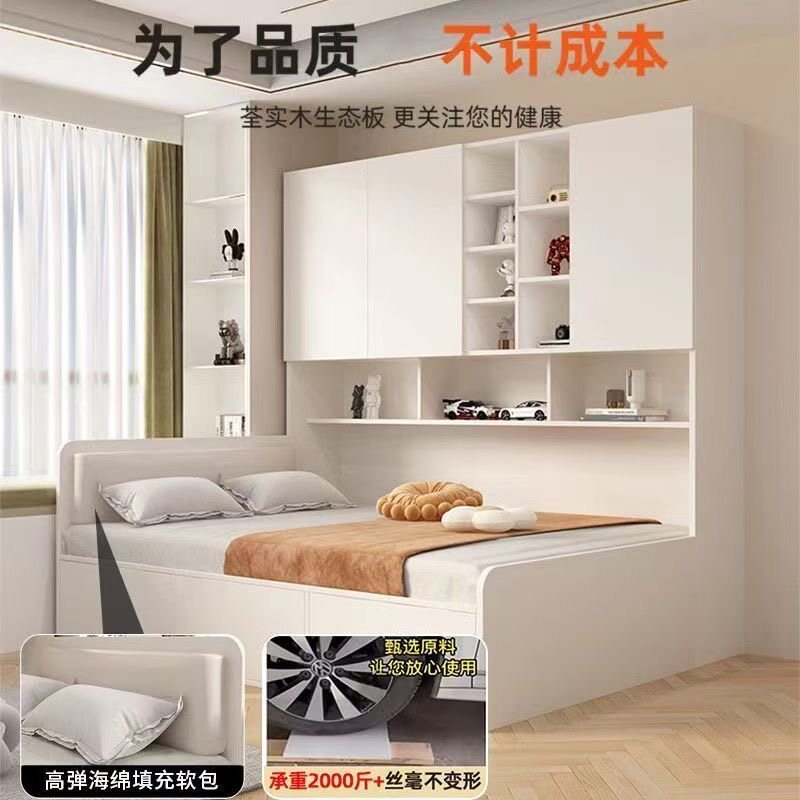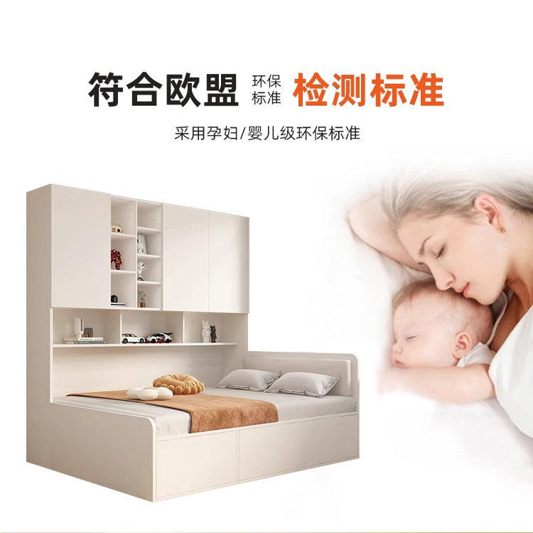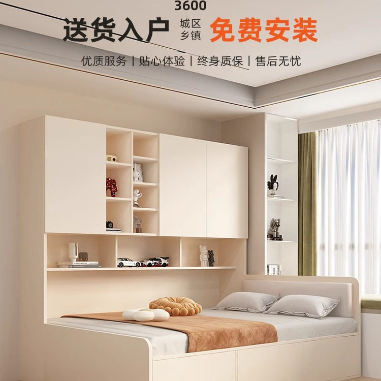 香港可发衣柜床榻榻米一体侧柜奶油风多功能储物小户型儿童单人床