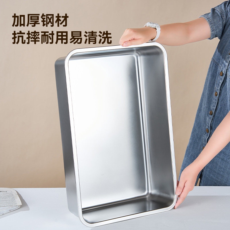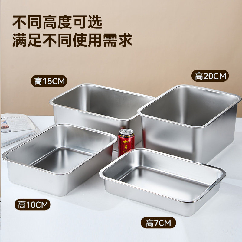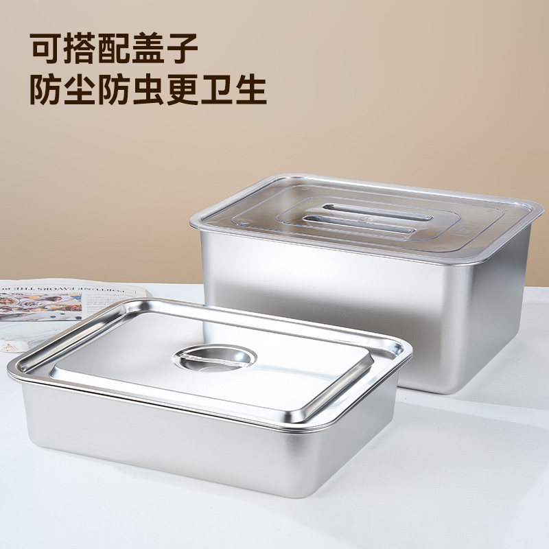 加厚食品级不锈钢平底方盆带盖透明盖长方形平底加深托盘大号方盒