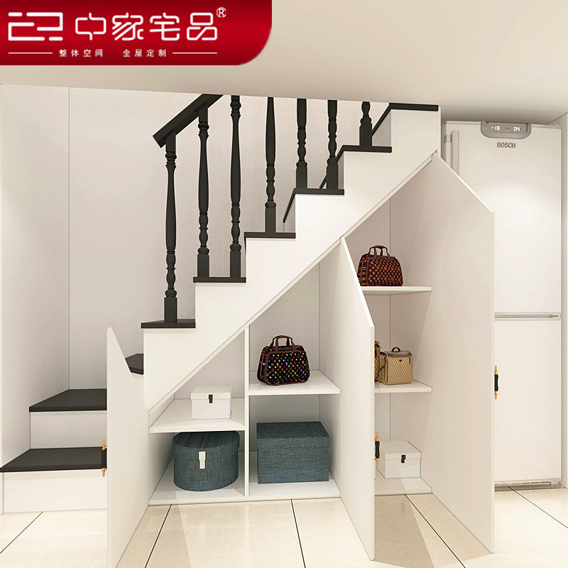 小户型公寓定制整体楼梯底下斜角柜定做直梯实木扶手欧式家具新品