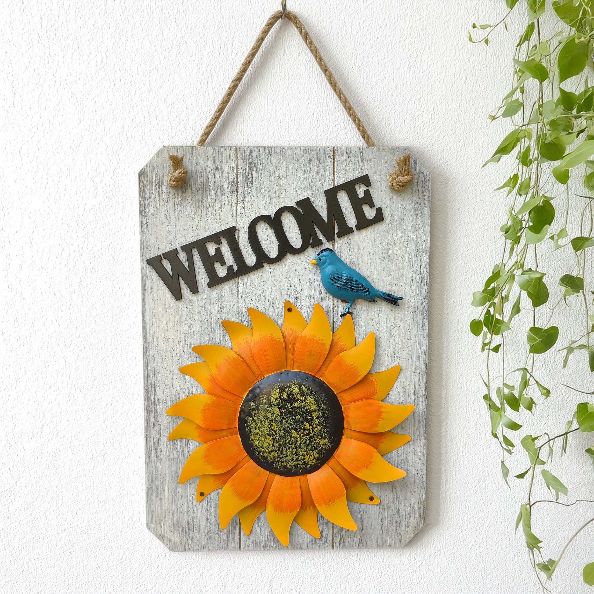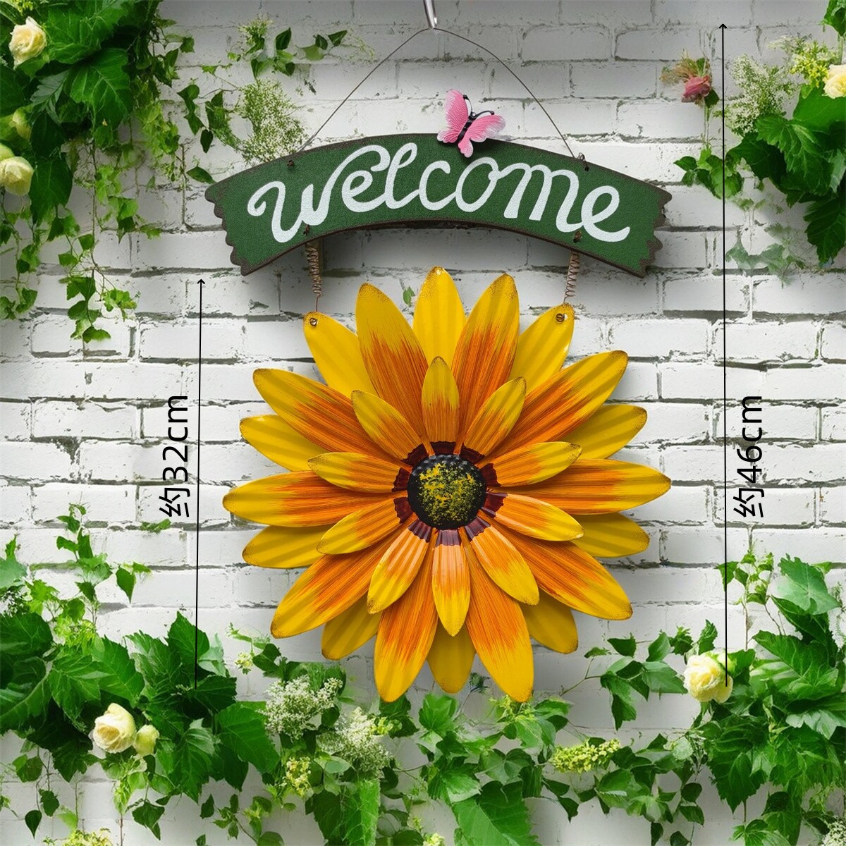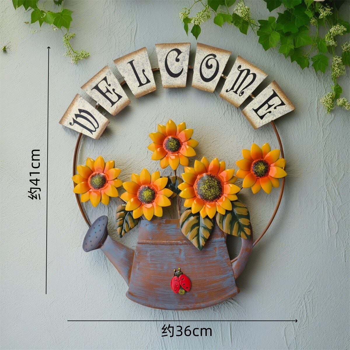 铁艺太阳花挂饰墙面装饰品壁饰向日葵欢迎牌水壶挂件阳台花园布置