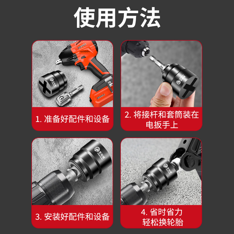 千斤顶套筒省力扳手电动万向神器转换头家用车载辅助拆卸轮胎工具