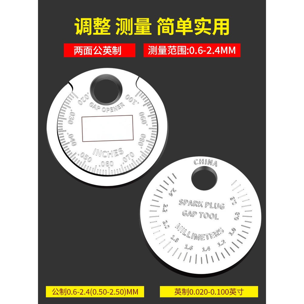 火花塞间隙调整工具汽车摩托车火花塞间隙测量0.6-2.4mm币状量规