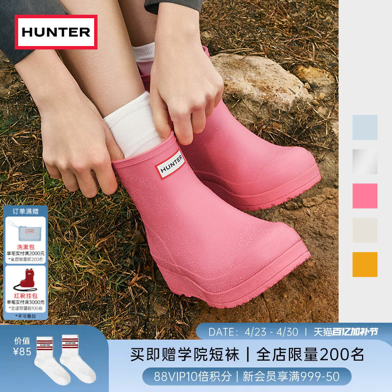 HUNTER雨靴女鞋酷玩短靴防水防滑厚底雨鞋户外露营矮筒短靴涉水鞋