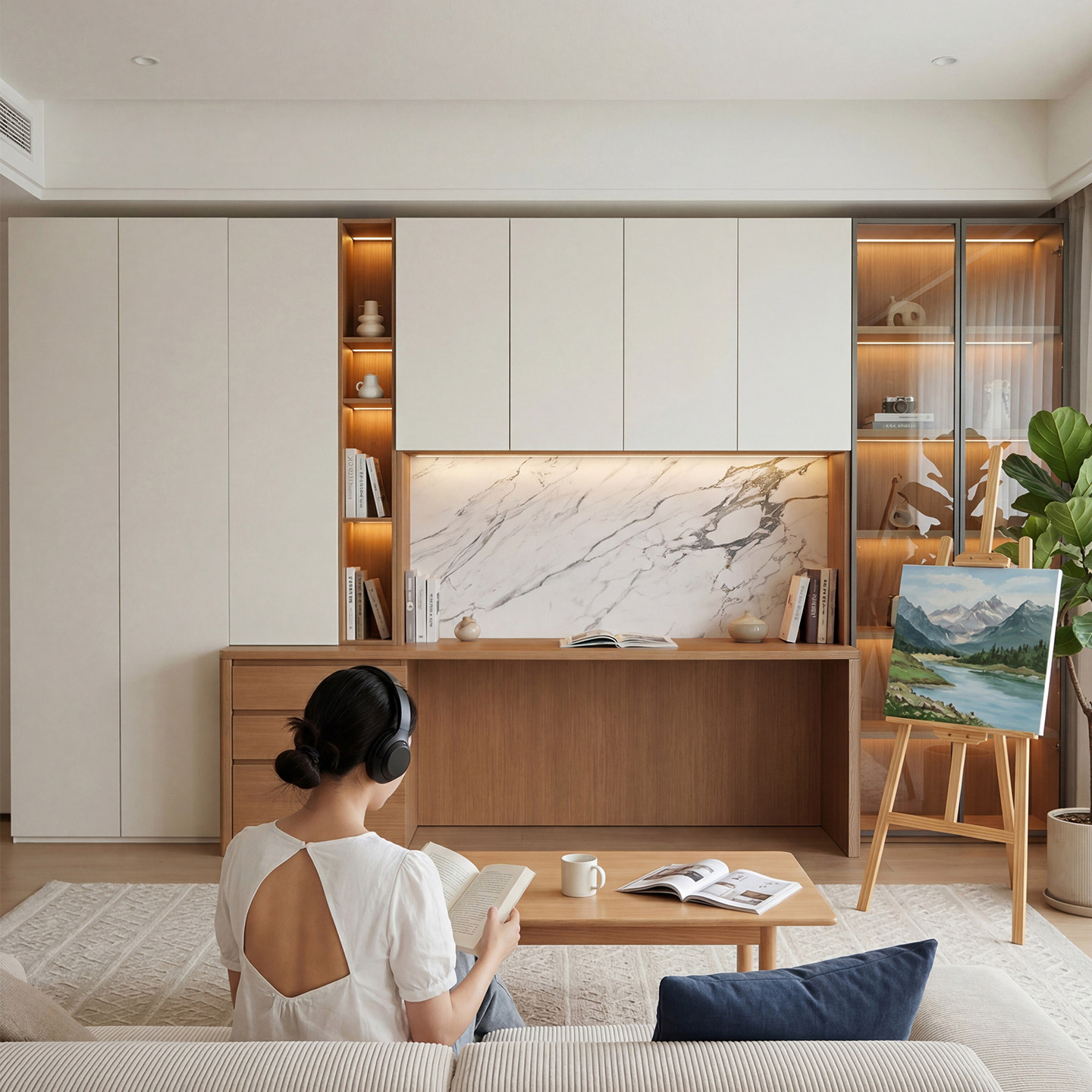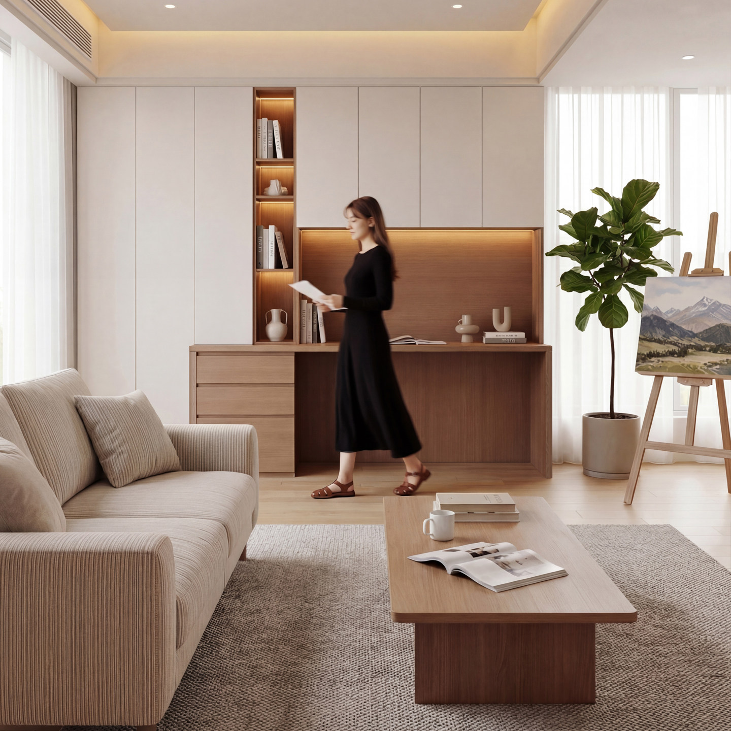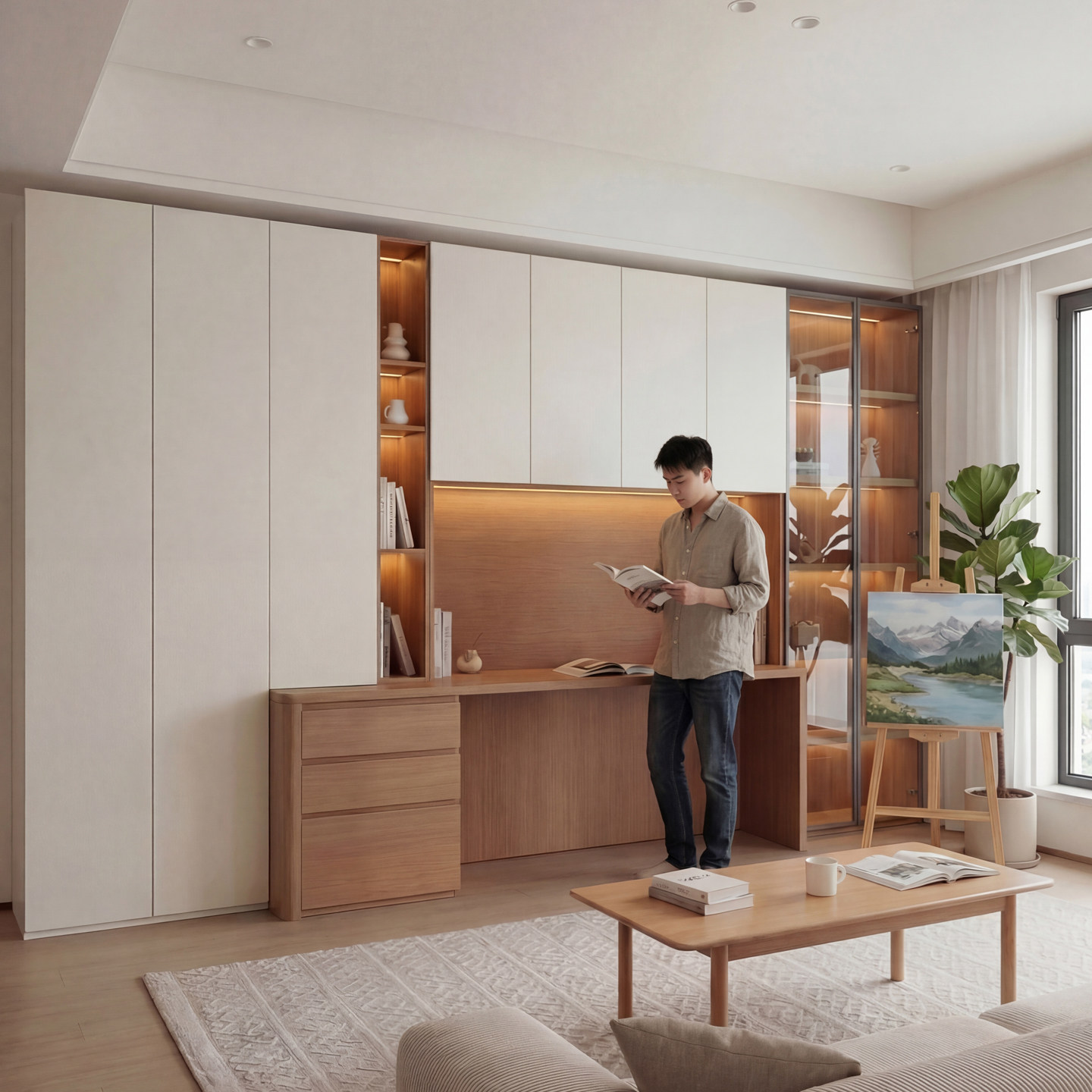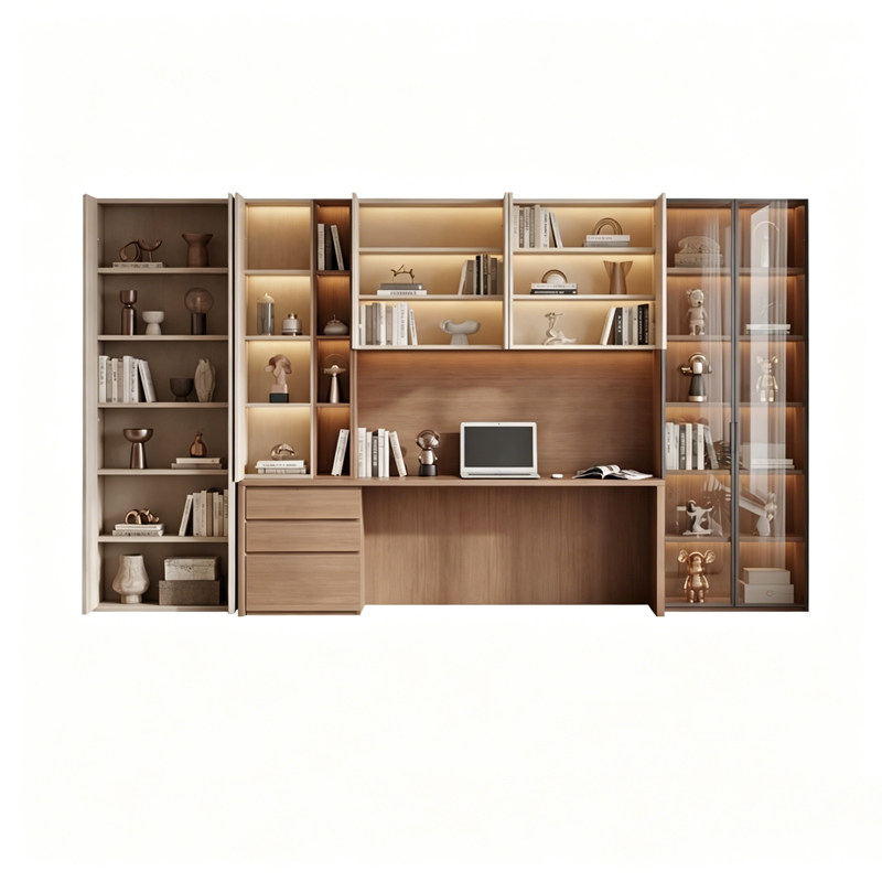 定制电脑桌带书柜一体组合意式极简多功能现代2026新款实木书桌柜