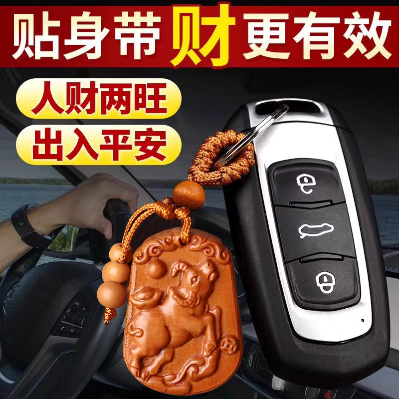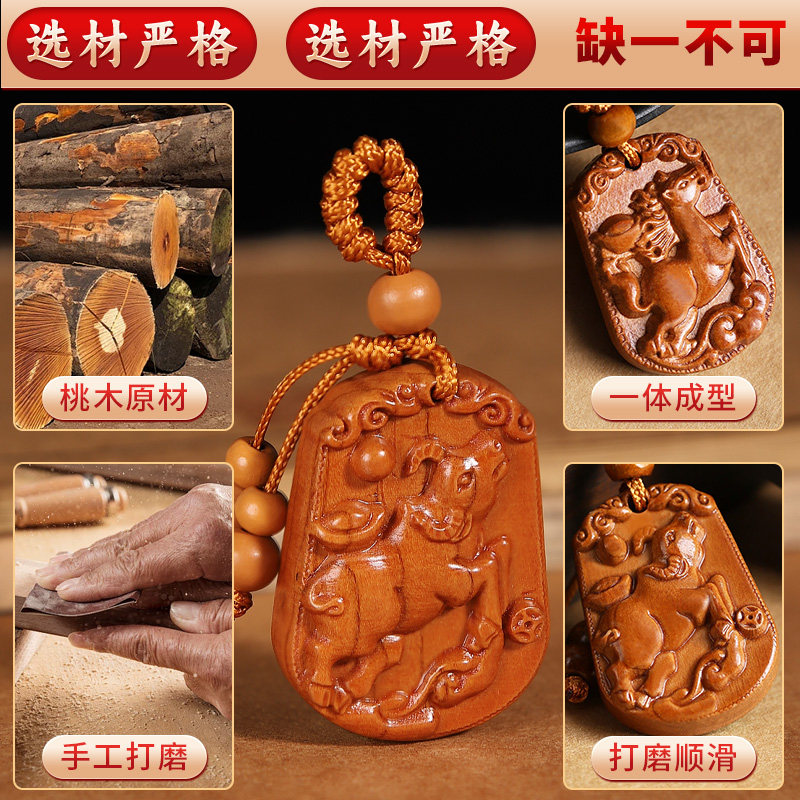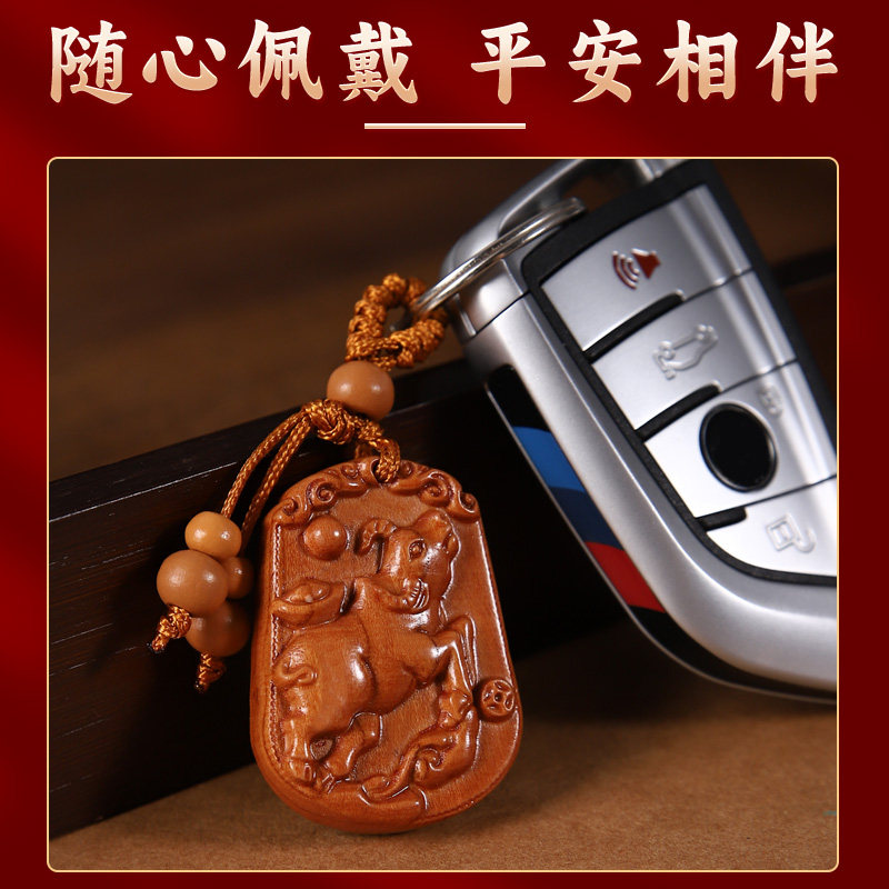 真桃木钥匙扣精雕十二生肖属相挂件礼品木雕刻配饰随身饰品护身符