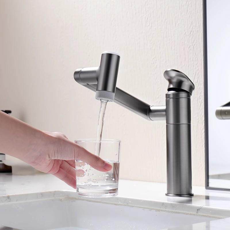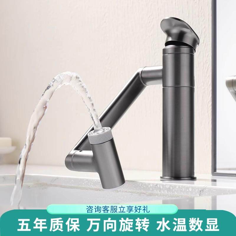 黄铜可旋转机械臂多功能洗脸盆冷热水龙头防溅水嘴浴室卫生间延伸