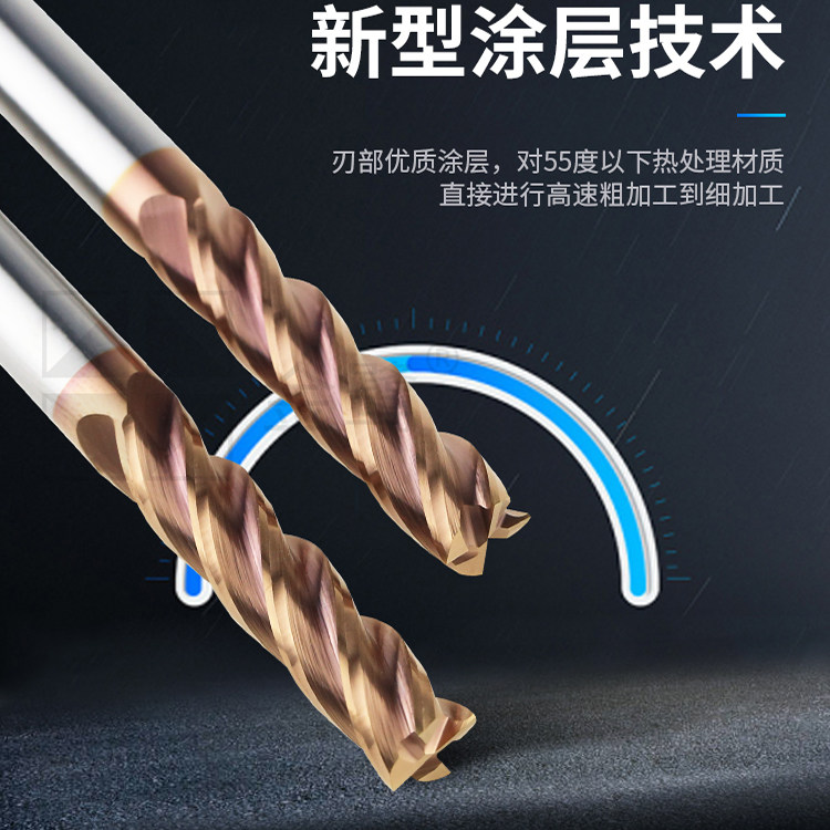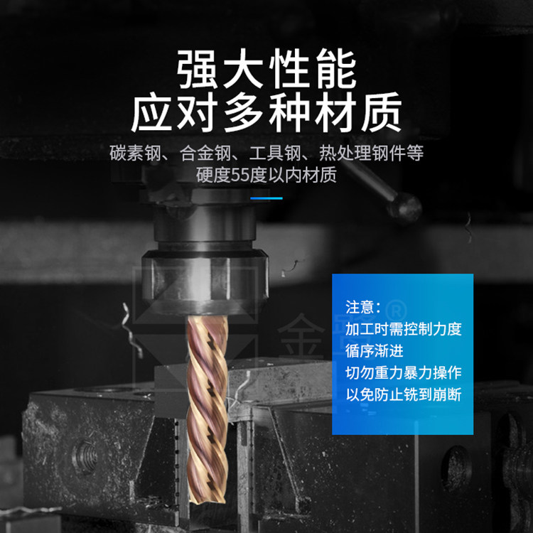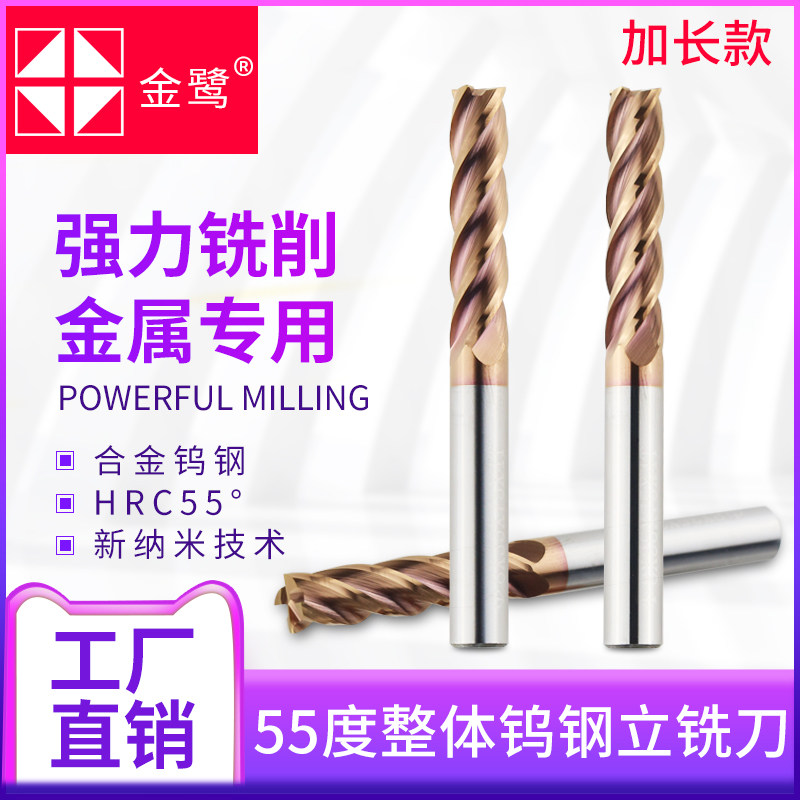 金鹭 整体钨钢加长立铣刀55度4刃2刃平头键槽铣刀cnc加长钨钢铣刀