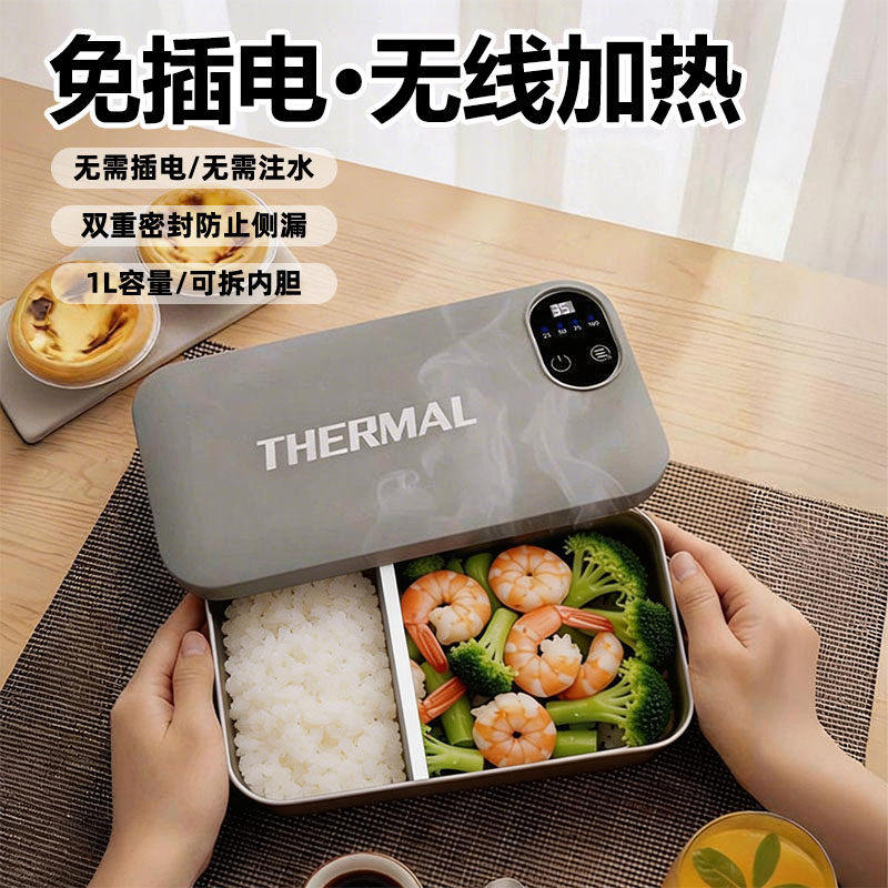 日本无线加热电热饭盒免插电新款超长保温usb可充电学生便当盒