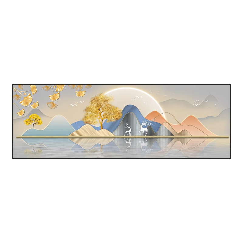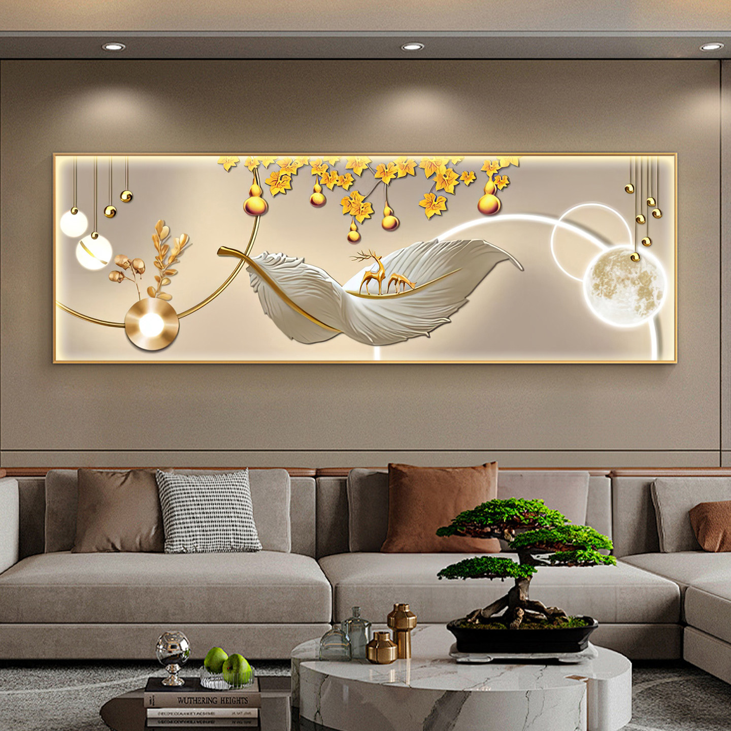 轻奢LED发光灯画客厅沙发背景墙大气高级横版壁画晶瓷免打孔挂画