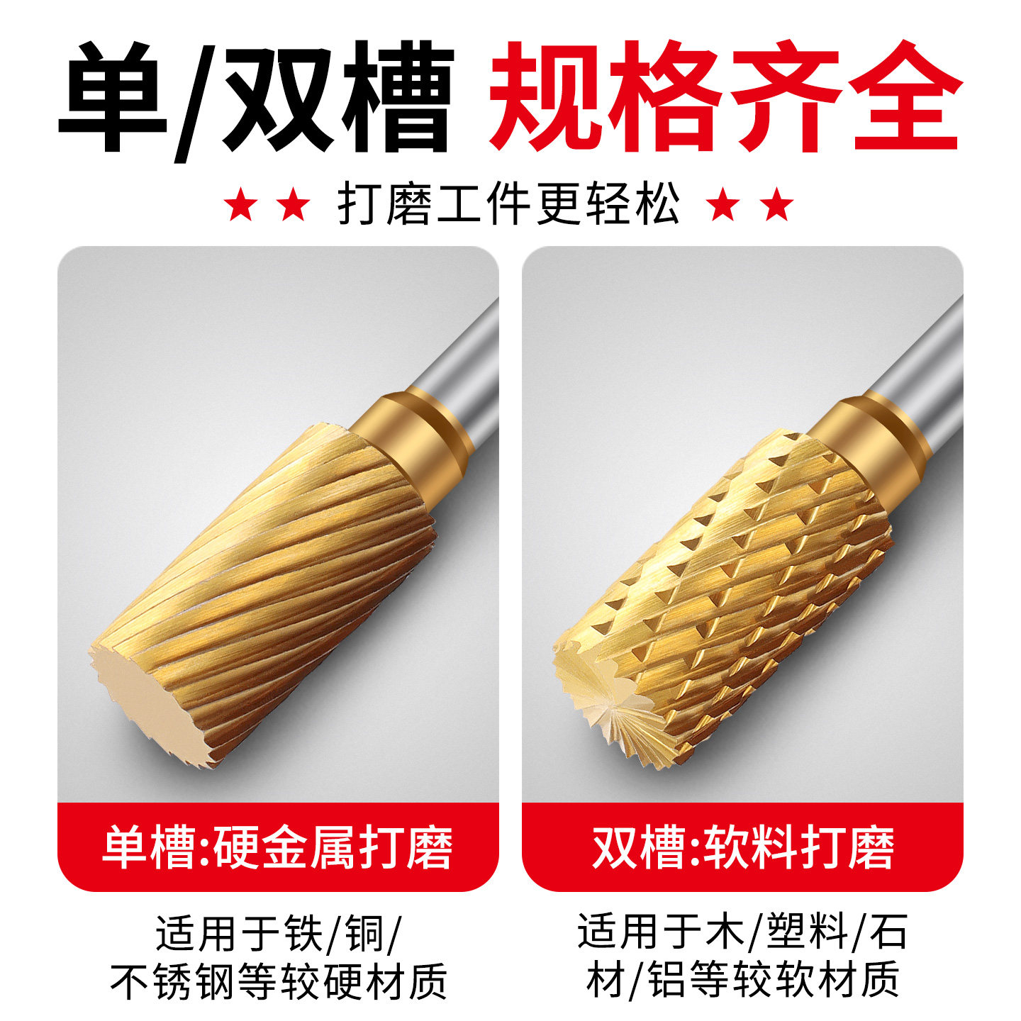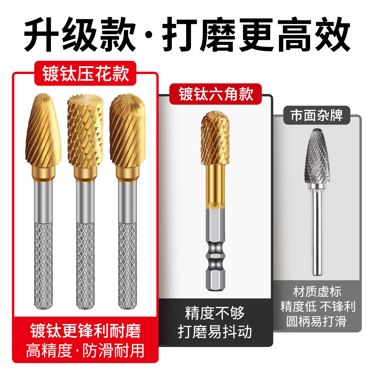 镀钛钨钢磨头电动硬质合金旋转锉铣刀金属不锈钢电钻打磨抛光工具