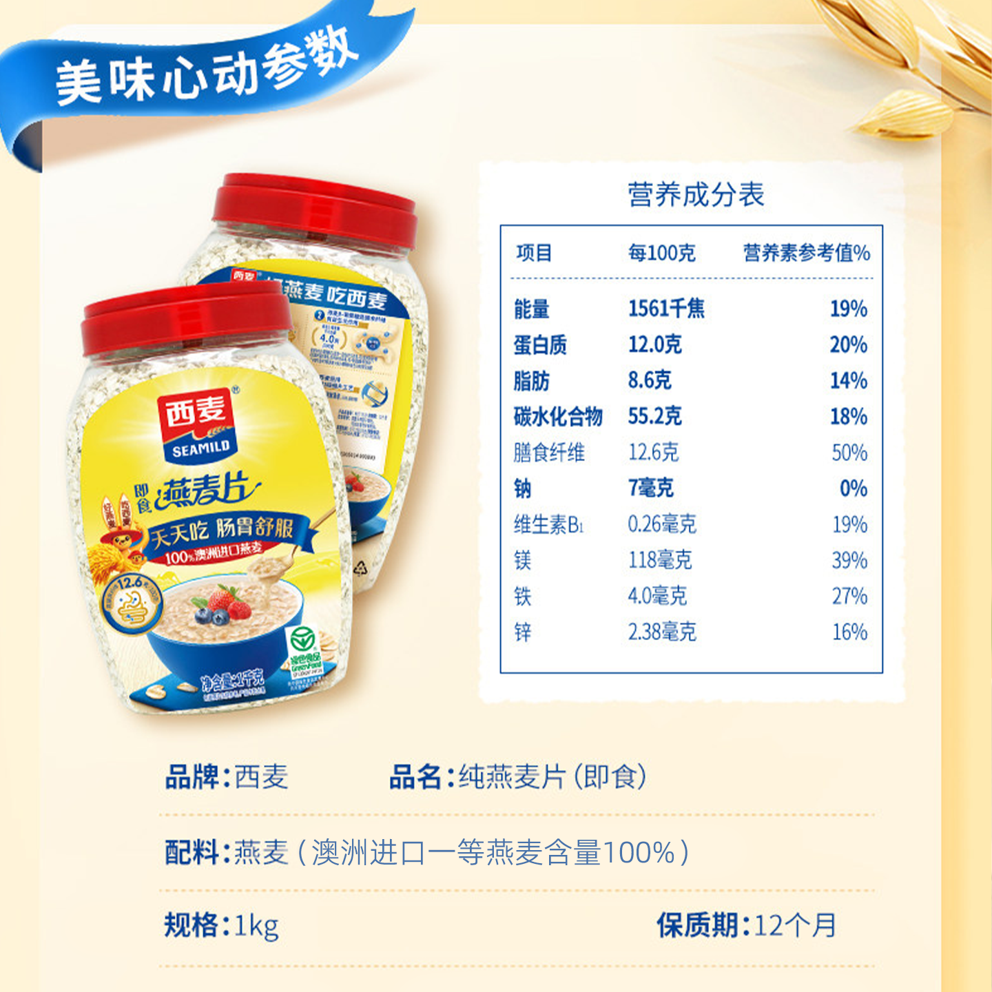 【1kg】西麦纯燕麦片懒人速食膳食纤维早餐即食谷物速食冲饮营养