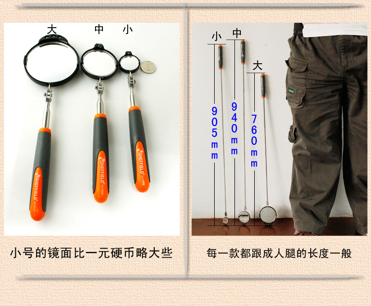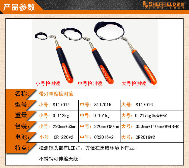 包邮英国钢盾 中型带灯伸缩检测镜 车底检查镜 带灯万向检测镜