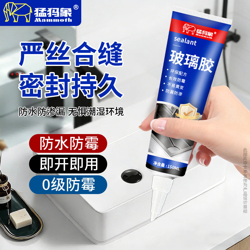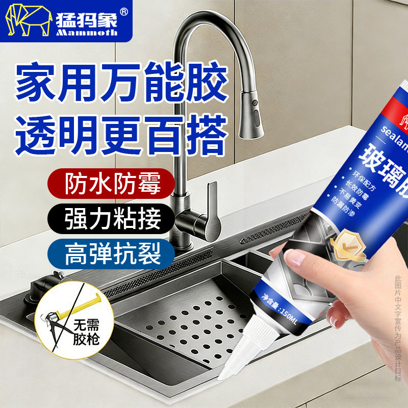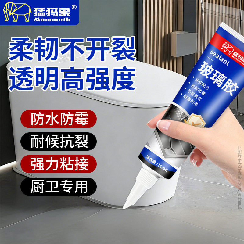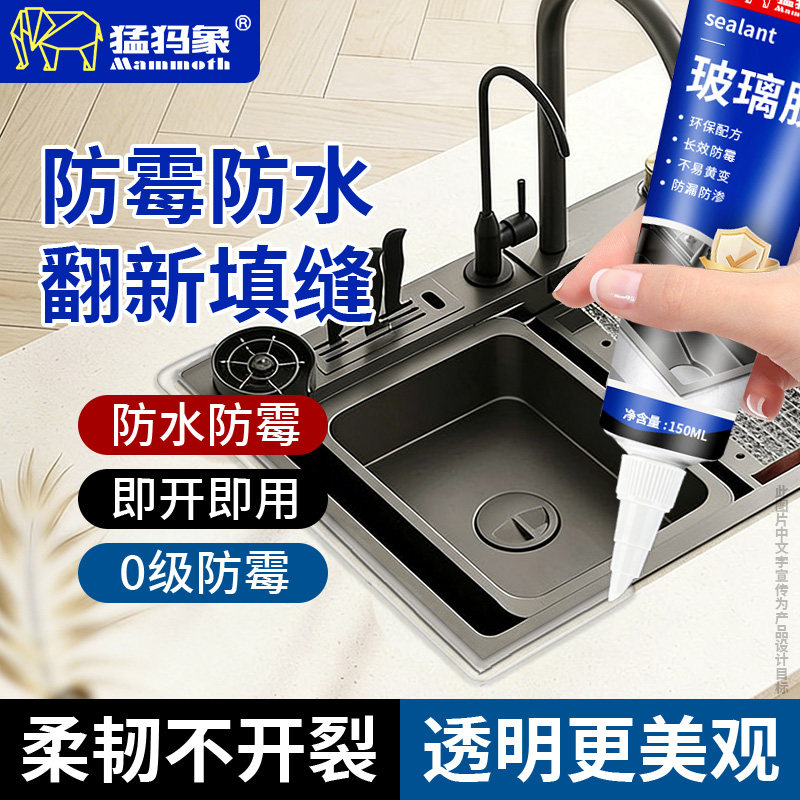 猛犸象透明玻璃胶防水防霉密封胶厨房卫生间即开即用0级防霉