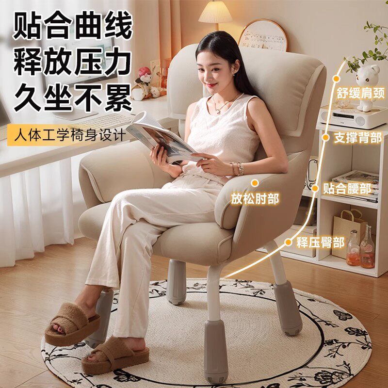 电脑椅子女生卧室书桌靠背椅家用舒适久坐办公椅升降学生化妆凳子