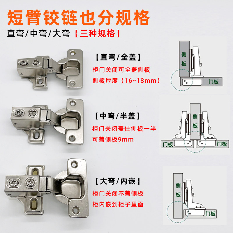 短臂阻尼铰链窄边框窄侧板专用门橱柜门不锈钢超短尾臂身合页铰链